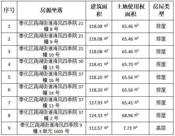 标的一:宁波市奉化区莼湖街道海风四季院8套联排,单套建筑面积约117.93㎡-124.33㎡,国有出让商品房产权,单套/整体转让均可,价格可详谈。