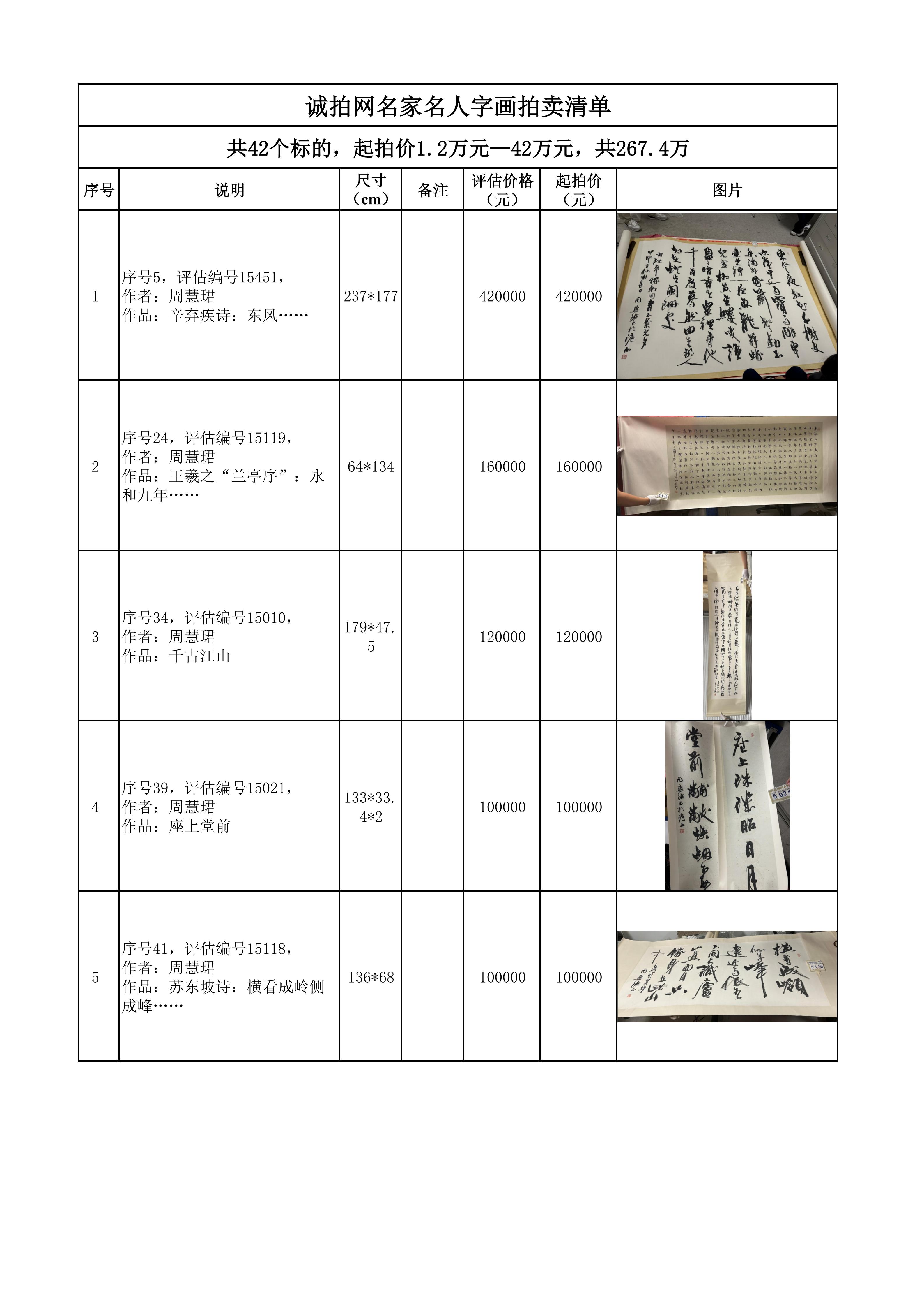 拍卖标的为一批金融机构抵债的名家名人字画。现将有关事项公告如下: