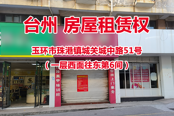 玉环市珠港镇城关城中路51号 (一层西面往东第6间) |