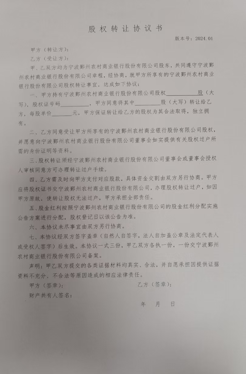 2、本次拍卖标的需持有鄞州农村商业银行股权证的企业法人方可参加。(提供股权证)